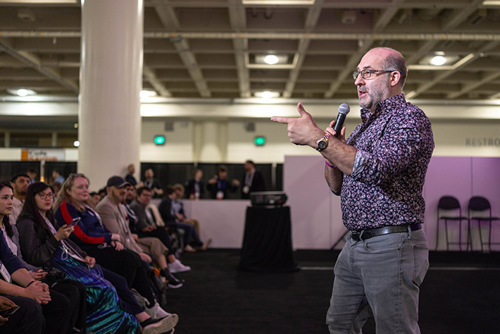 The Hall’s main stage. Fast-cut microtalks, spotlights, and live moments that draw the entire floor. Plus, the home of GDC Pitch!