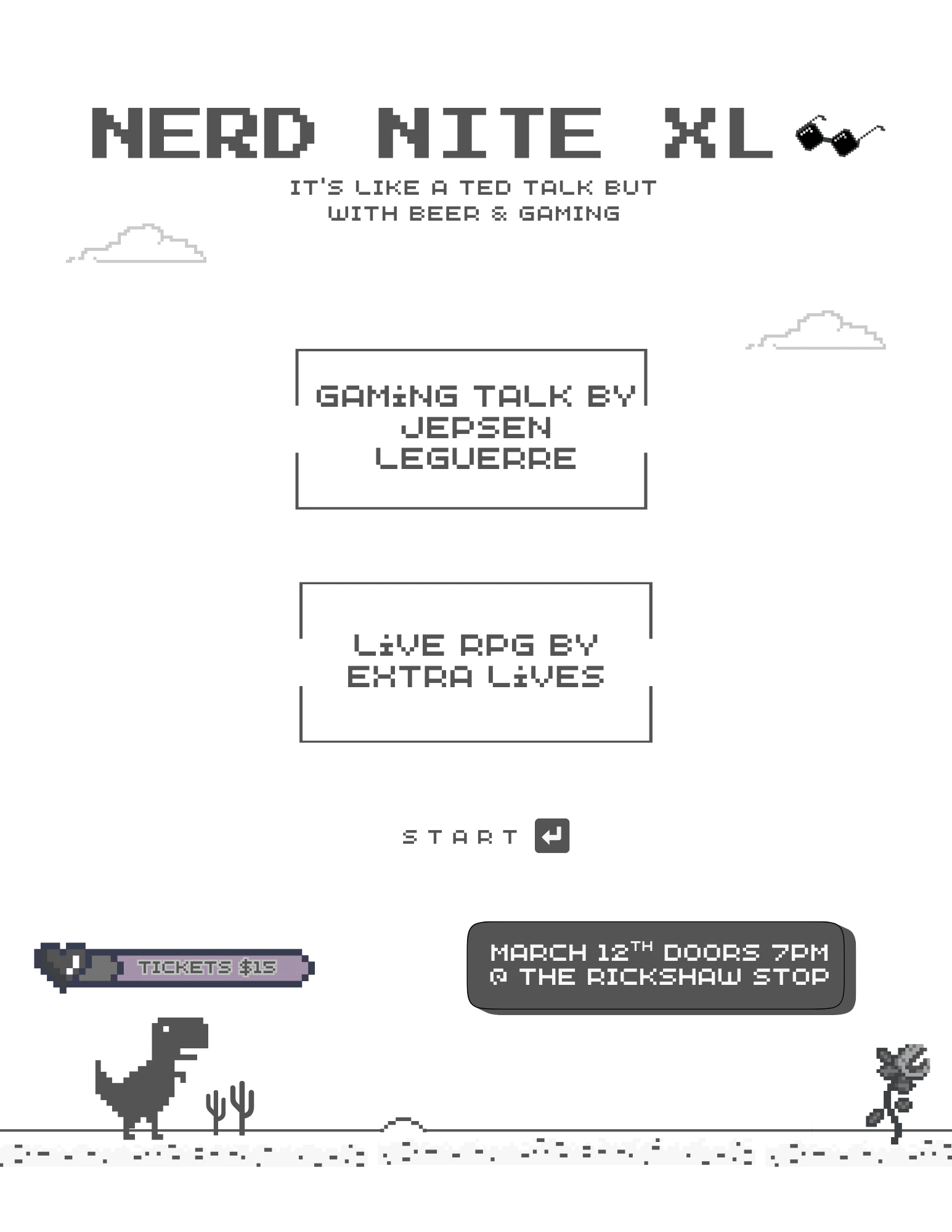 Enjoying GDC? Then join us on Thursday, March 12th to level up to Nerd Nite XL. After a talk from the world of gaming, we'll plunge into an interactive live adventure from Extra Lives: a choose-your-own-adventure RPG concert where the audience (that's you) collectively votes on decisions that shape the story in real time.